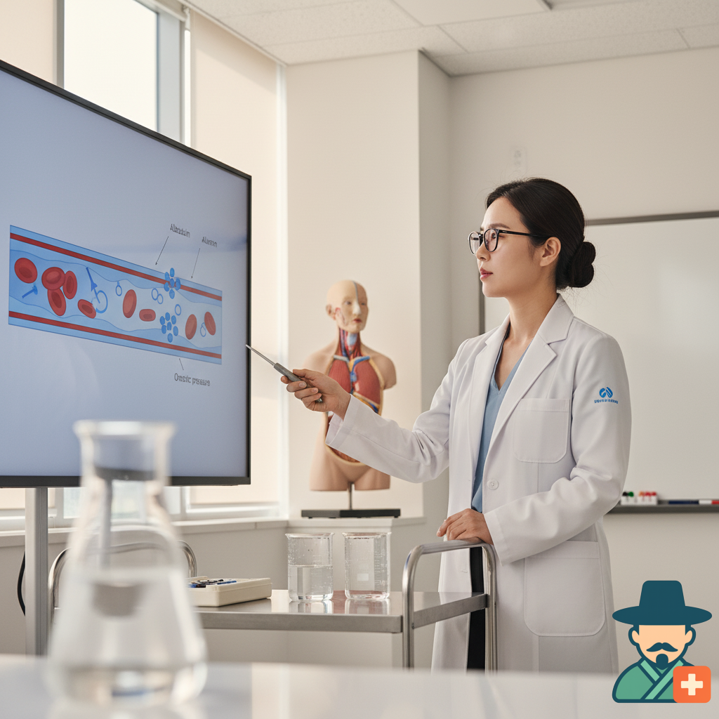 알부민이 과다하게 투여되면 혈액 내 삼투압이 높아져 탈수 증상이 발생할 수 있으며, 반대로 알부민 부족은 부종과 복수(腹水)를 유발할 수 있습니다.